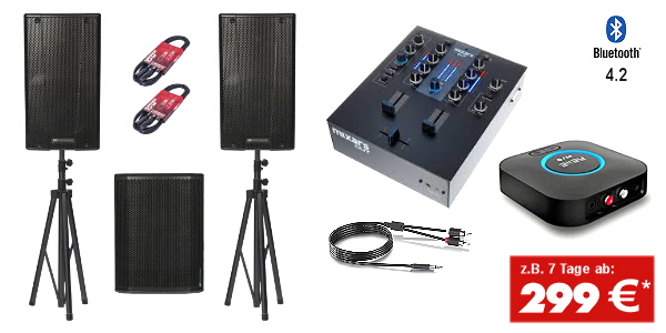 1 x DJ-Mixer: Reloop RMX-10BT mit Bluetooth / 2 x Audiokanal + 1 x Mikrofonkanal